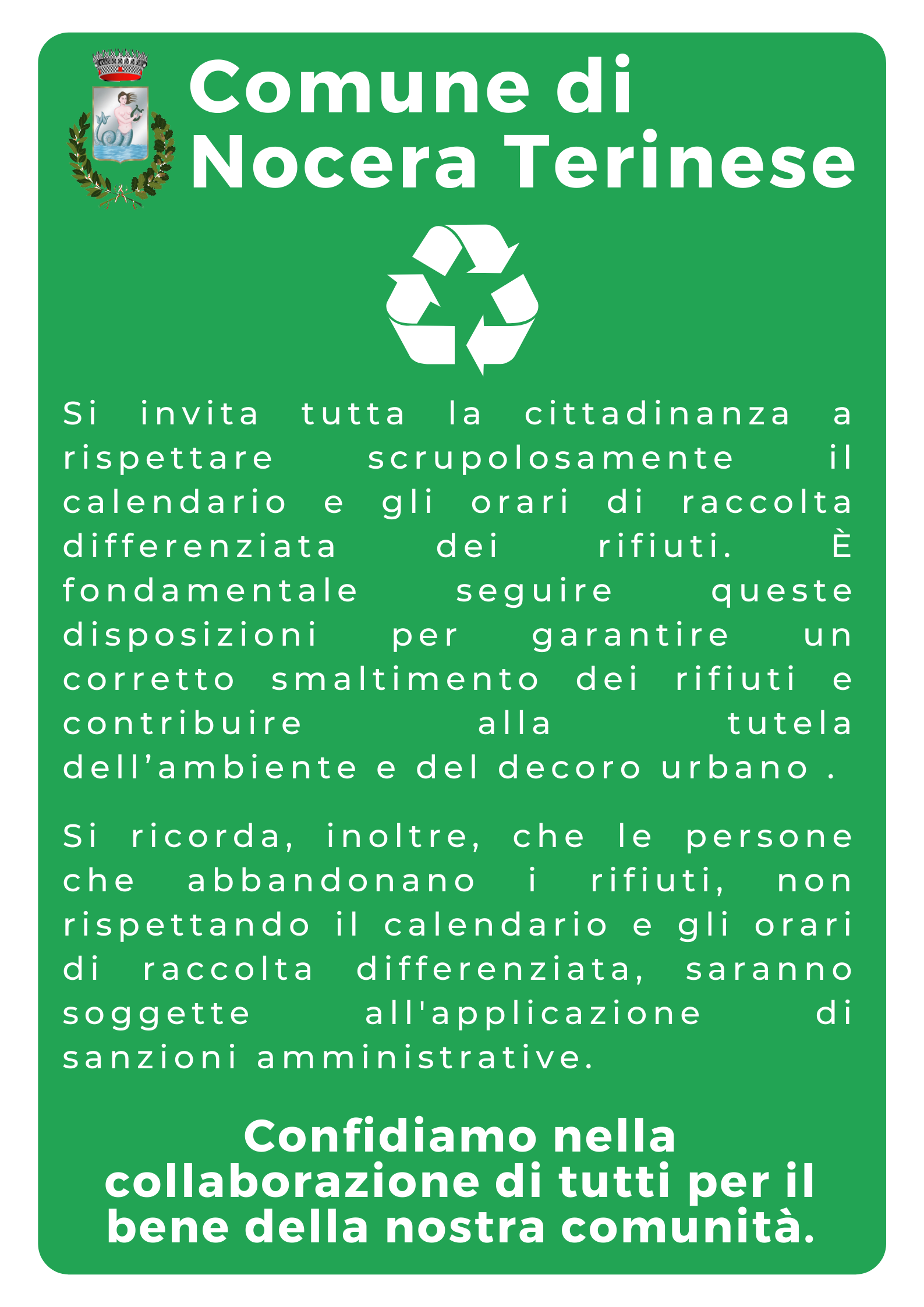Confidiamo nella collaborazione di tutti per il bene della nostra comunità.