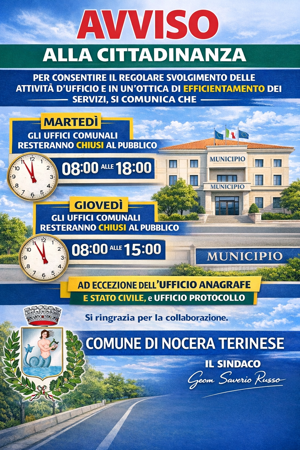 AVVISO - Uffici comunali chiusi al pubblico