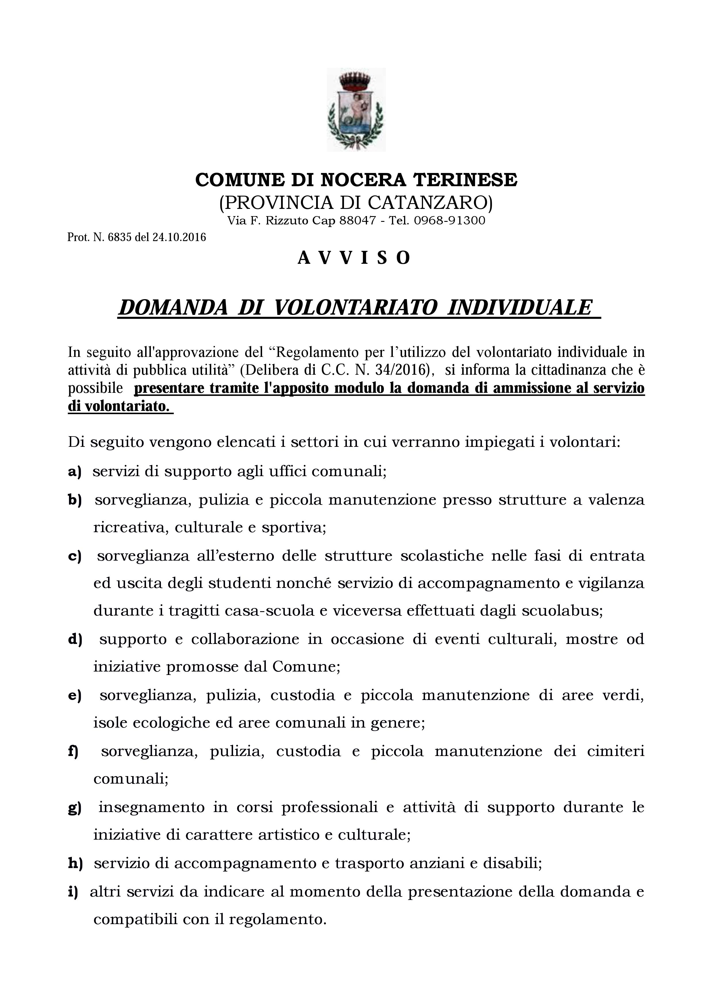 DOMANDA DI VOLONTARIATO INDIVIDUALE